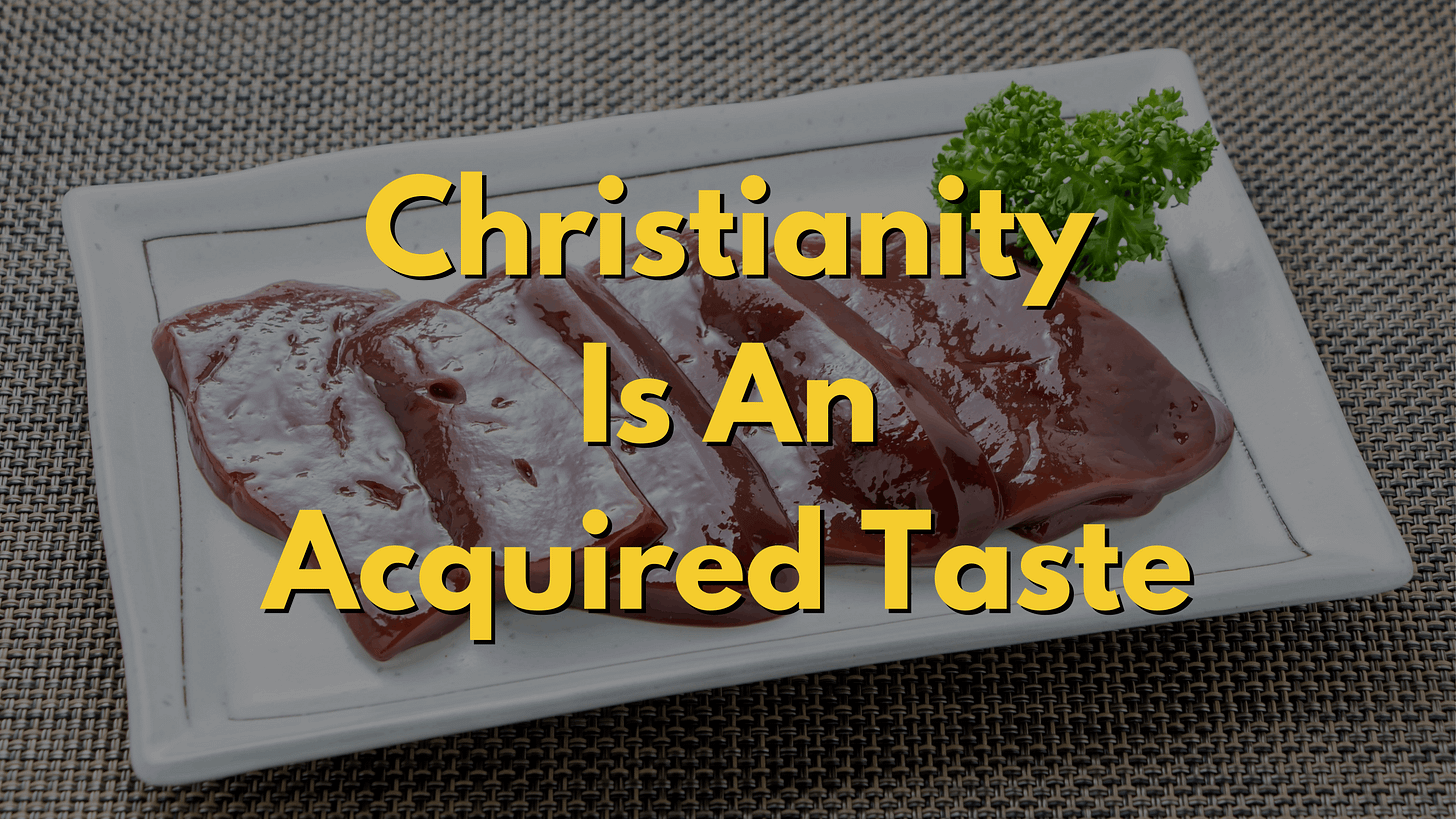 Christianity isn’t liver, though. It’s an acquired taste, to be sure, but…