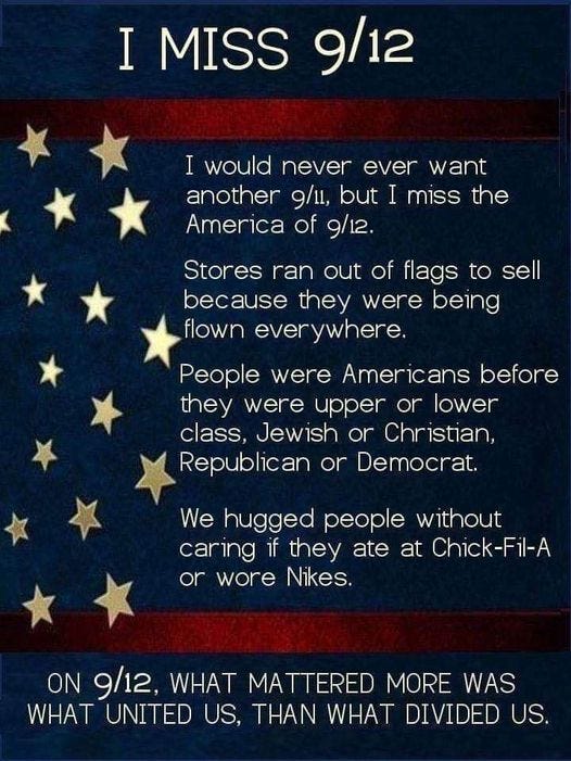 It’s a nice sentiment, to be sure. I was 12 at the time, but I can remember the “we’re all in this together” spirit that was shared in the aftermath of the tragedy. It was a positive moment in a dark time, and it’s understandable why people want to revisit it.