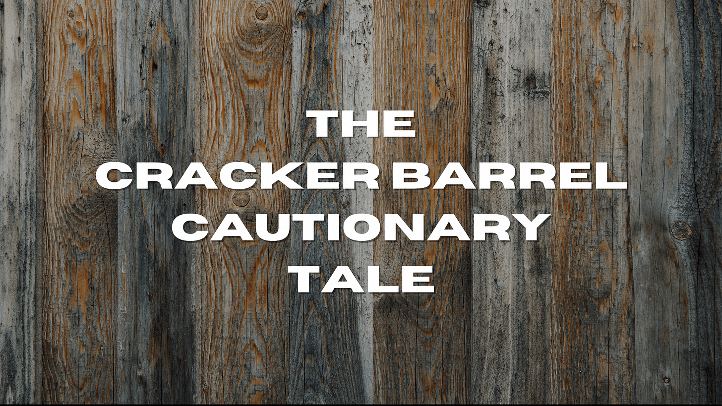 At the heart of the issue, it feels like Cracker Barrel has abandoned what made them unique in an attempt to look like everybody else.