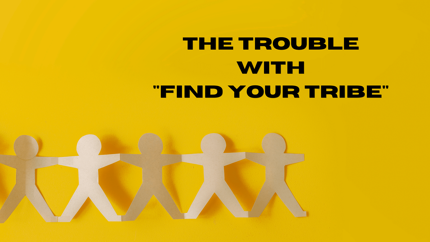 This is a new, novel problem that we brought on ourselves. We burned up all of the social ties that create a “tribe” on the altar of individualism. Now, all of the “find your tribe” speak is just an effort to find community while remaining in a system that destroys community.